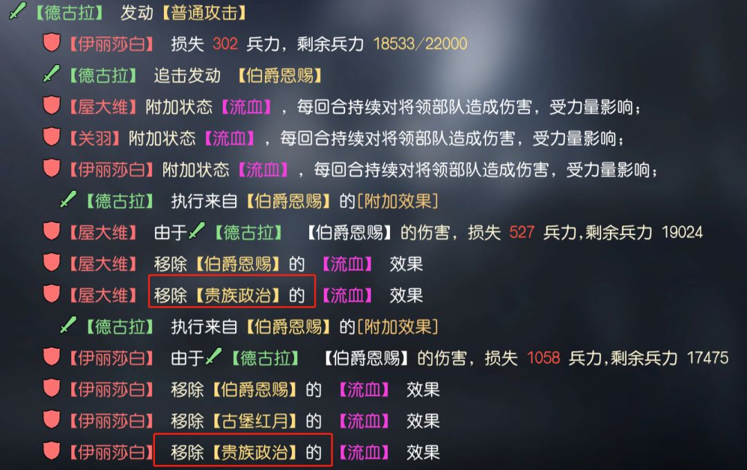 经过测试可以看出,虽然流血的执行来源不同,但作为相同效果,贵族政治所施加的流血可以正常触发其他联动技能,并能正常计算带有“叠加次数”的技能效果。