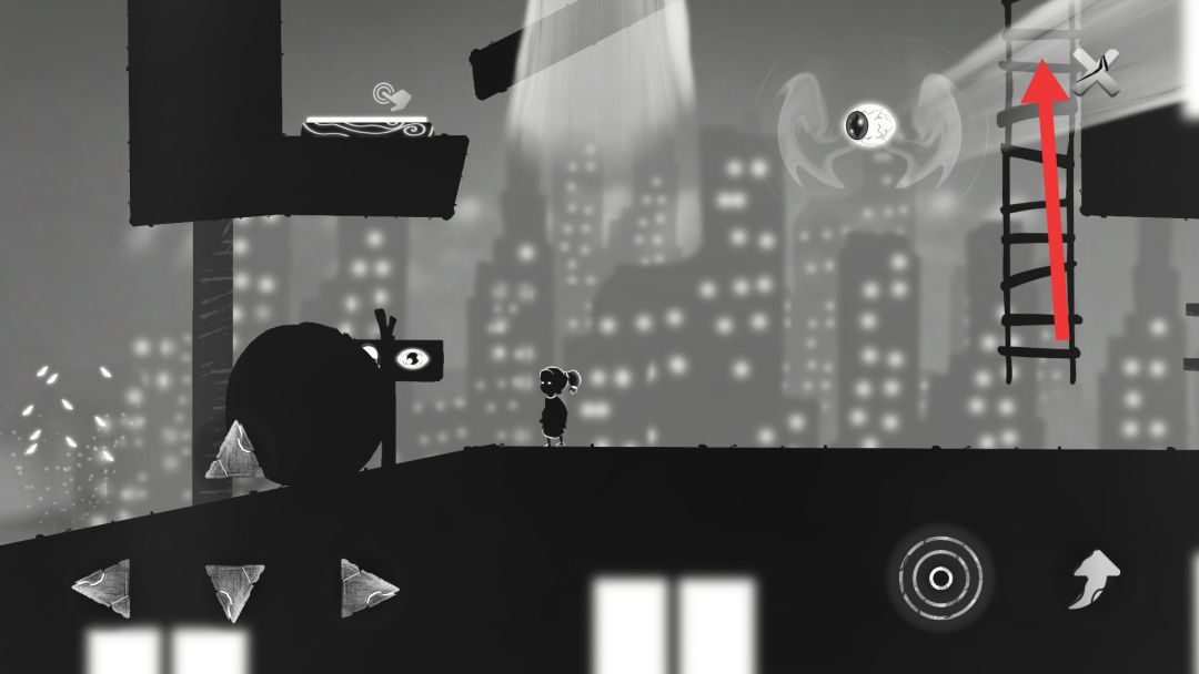 ④将高楼的正方体向左推(建议在正方体的右侧推)因为正方体会沿斜坡滑下触发机关,而小女孩则需沿梯子返回