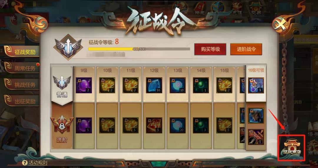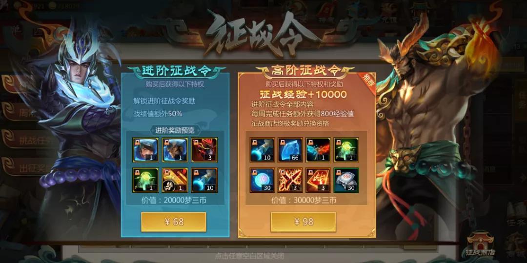 ps:如果已经购买了【进阶征战令】,希望升级【高阶征战令】的仙术师可以通过购买界面补足差价进行升级