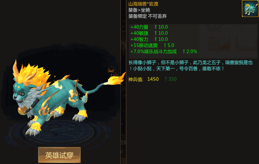 山海异兽可以通过使用竞技之魂合成进化为山海瑞兽*无双/官渡。