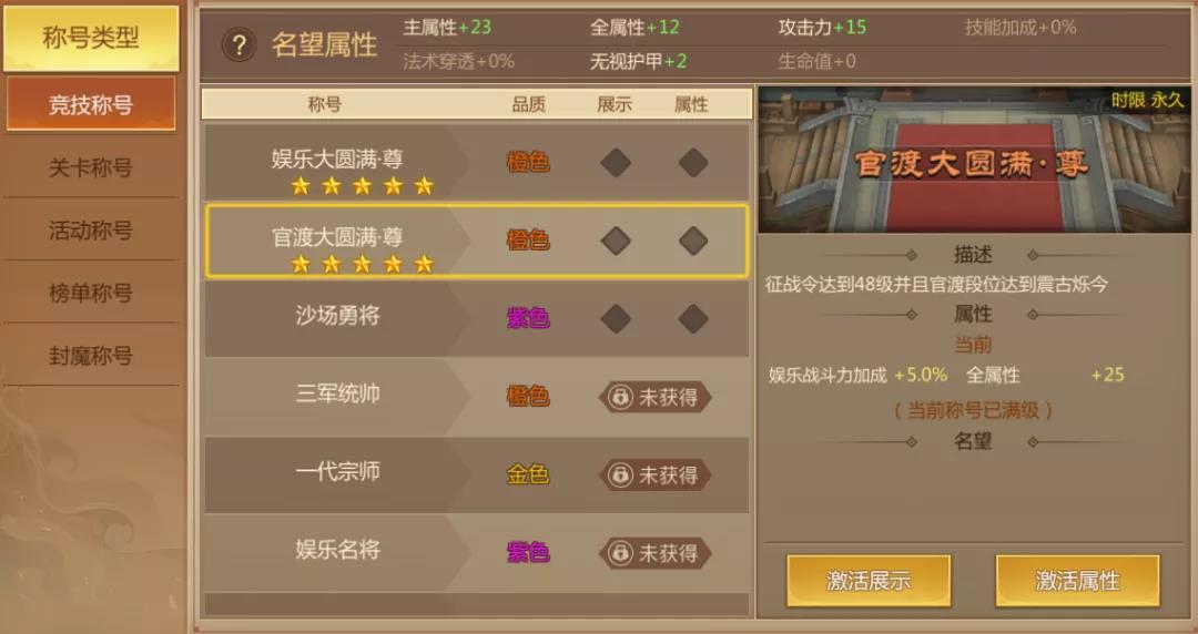 同时本次更新后,称号娱乐大圆满和官渡大圆满开放至五级。