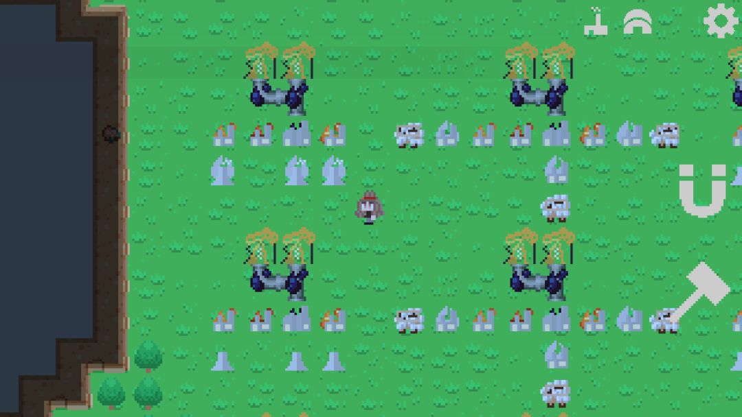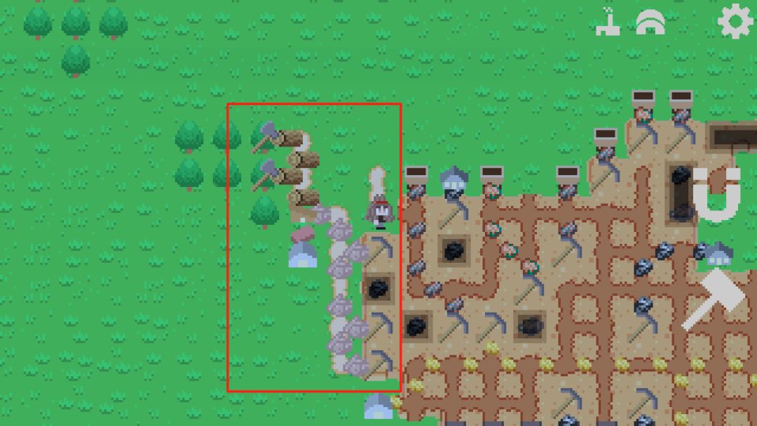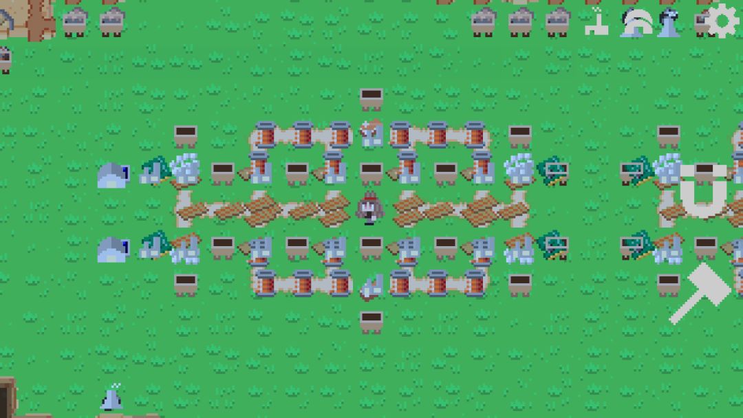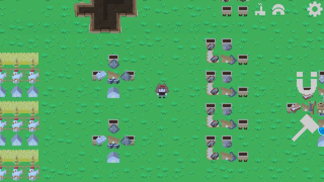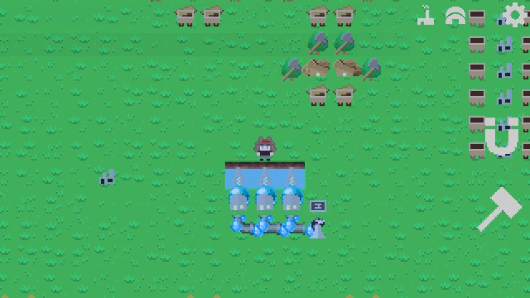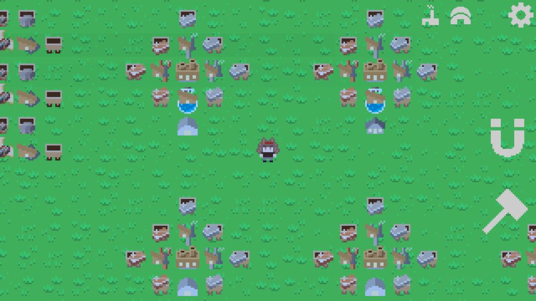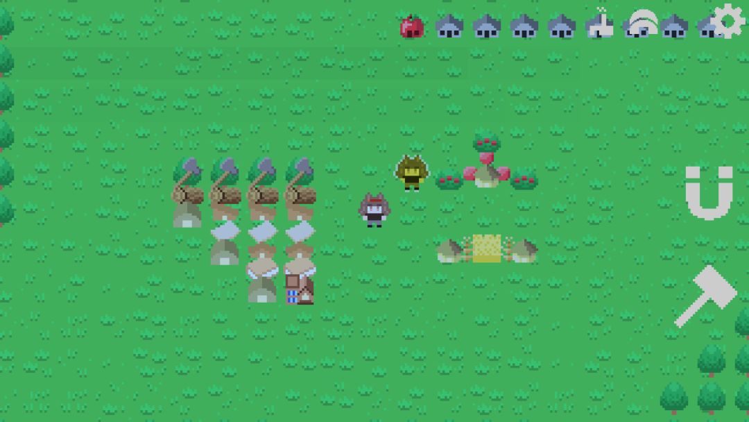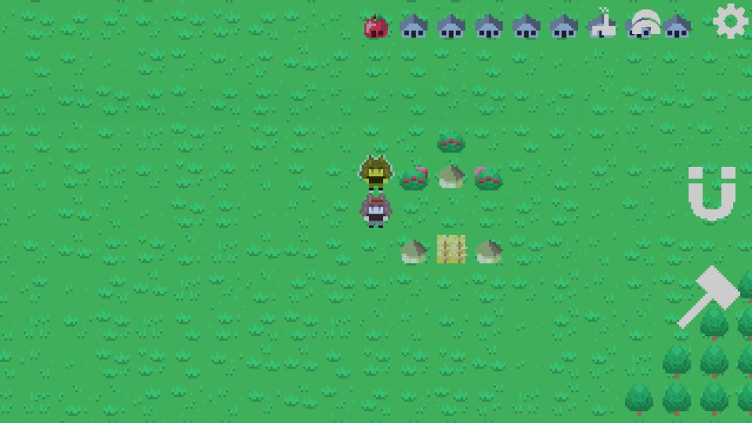 第一科技是我们需要献祭浆果才能解锁科技,研究出我们的浆果丛之后建造个一排浆果丛开始收集,收集方法也就是在上面走来走去就好,每个浆果丛的生产储存上限是100,后续就是继续出锤子,锤子的用法也就是删除建筑和复制建筑,非常好用的功能。然后是磁铁,磁铁的作用也就是停止建筑运行和开始建筑运行的开关,和连通运输道路的开关。然后就可以出第二科技祖先雕像。