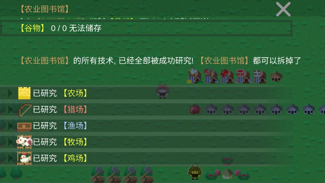 然后就开始研究农业农业图书馆有一个能用到很后期的资源就是鸡场输出食物18简直太爽,科技需求依旧为谷物要满足是很简单的
