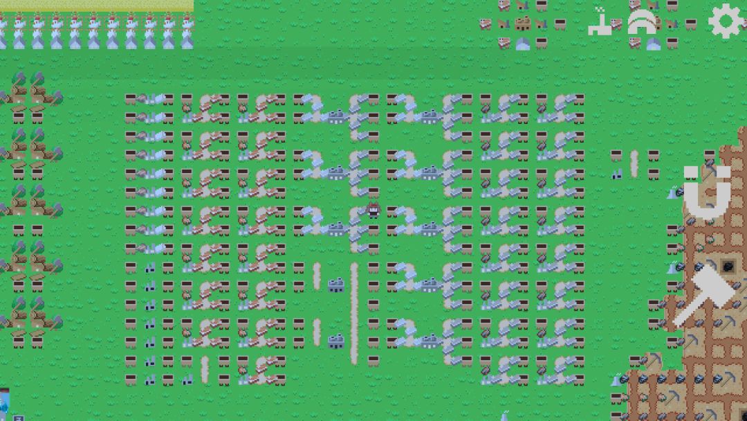 然后就是冶炼阶段了 为了整齐 我最开始的冶炼阵型真的是搞得我累死了,这边是我前期冶炼阵型真的是超级伤 但是比较好辨认这边是在冶炼什么矿源基本上一排铁一排铜不够就继续加,然后就是三本最后的大活。