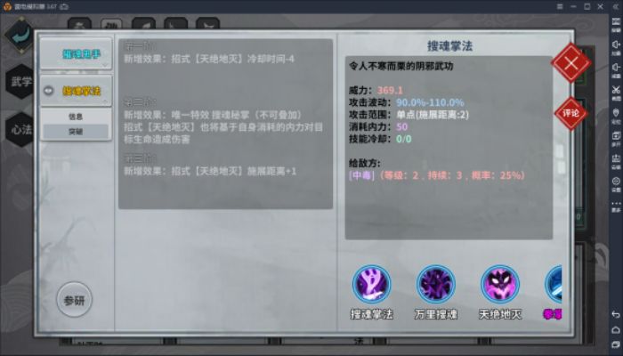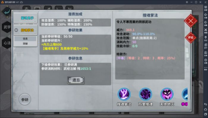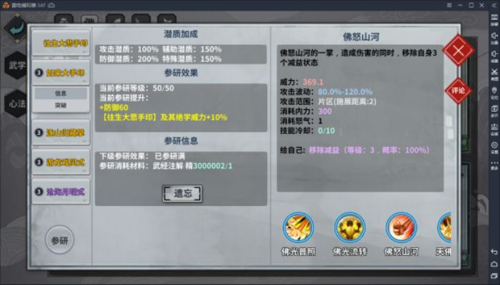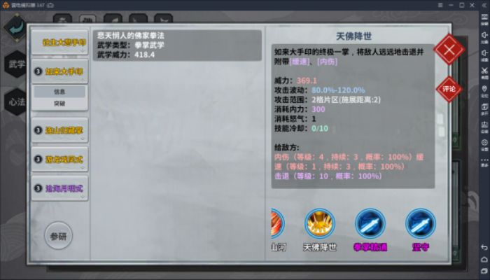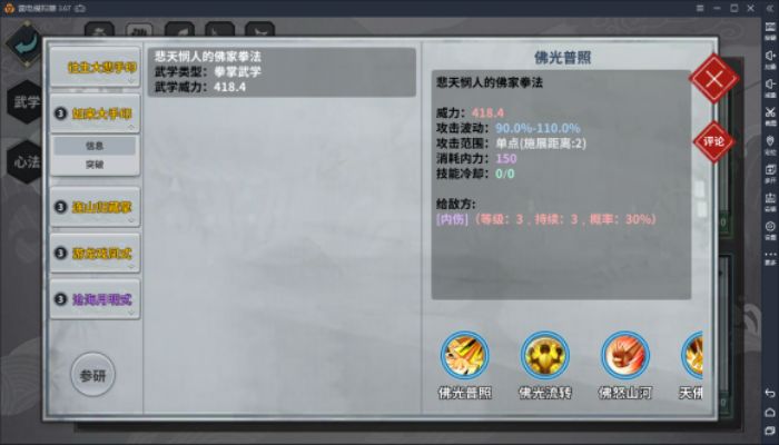 特殊加分2.5如来掌面板好看但是作为输出武学不是很合格,但是它还有其他优势(见下)