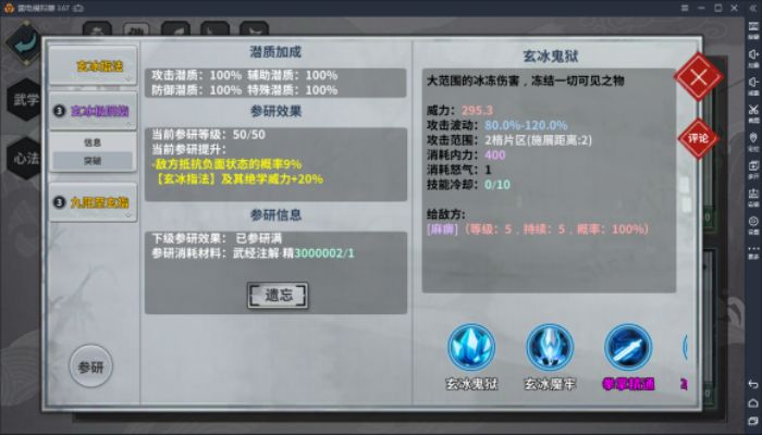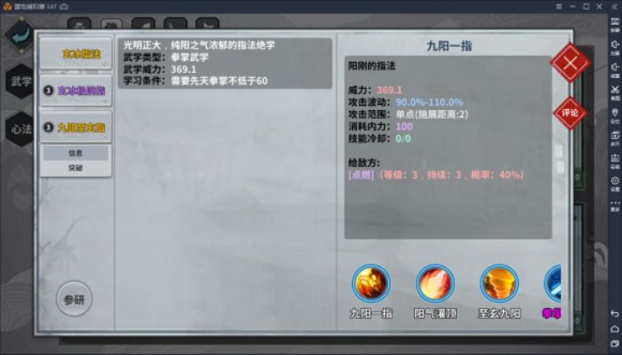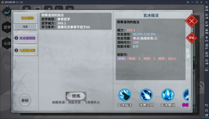 九阳至玄指,玄冰指法的进阶,威力369.1,威力第三档,这是阴极阳生了???建议入手一本用来辅。不像是打输出的,更大的用处是打辅助叠加debuff