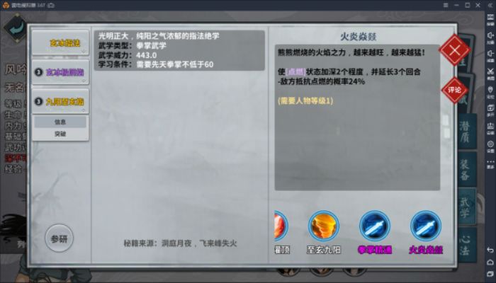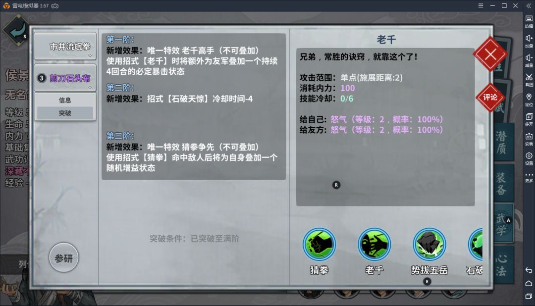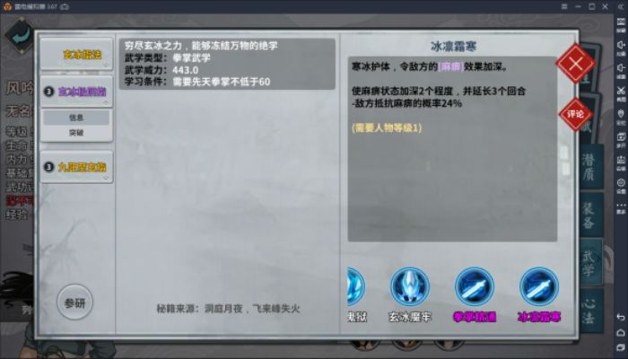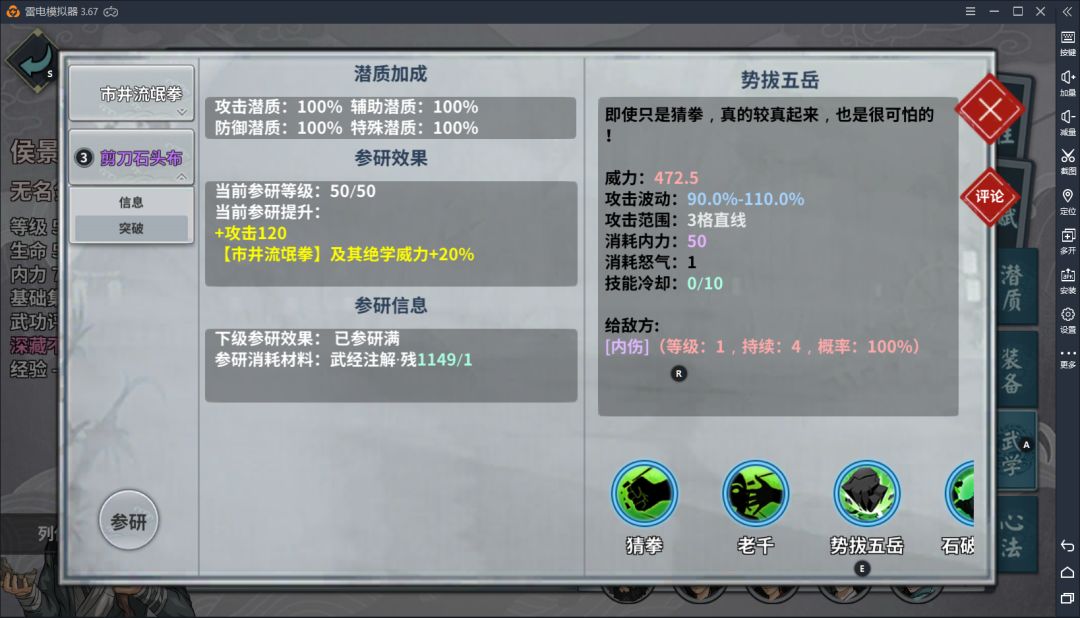 参研依然是增加血量,配合天赋,五行拳成为了前排很多侠客带的辅助武学