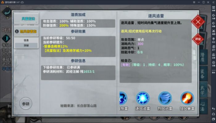二技能,一突后可以再行动,这是部分武学三突才会有的特效,两个增益飘渺增加存活的可能性,真气外放加伤害。况且还能使用后再行动。