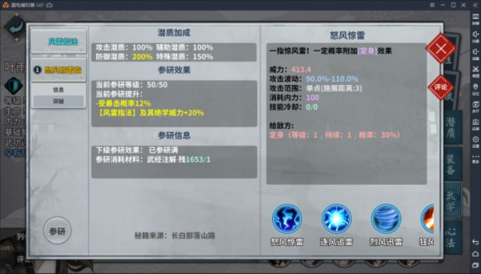 怒风惊雷指,风雷指法的进阶,威力344.5,属于倒二武功——吃我杨永信闪电一击