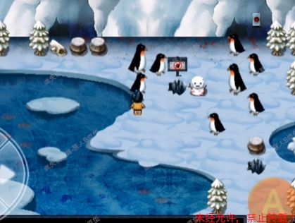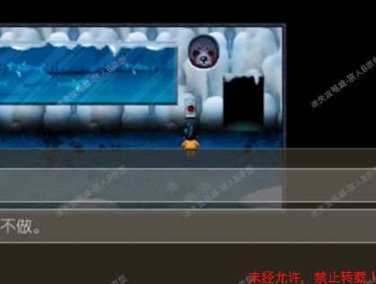 62.来到企鹅缸面前拿起冰锥,进入企鹅房。根据企鹅口中的线索可得知,他们喜欢吃的是红色的螃蟹。此时玩家需要注意 企鹅左边的桶不能碰,雪人不能碰,一碰即死。 62.1