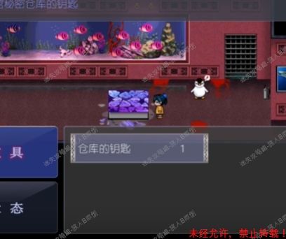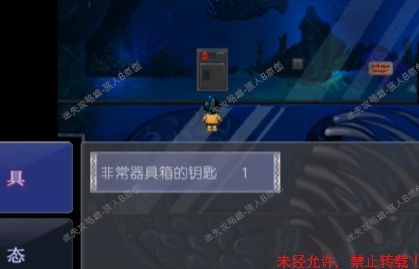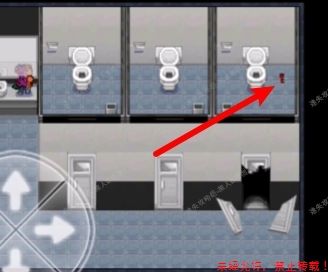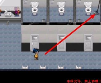 6.如图所示,角色所占位置脸正对的地方是一把扫除箱【钥匙】,拿走,去男厕所开第三个门,拿到【拖把】。6.1