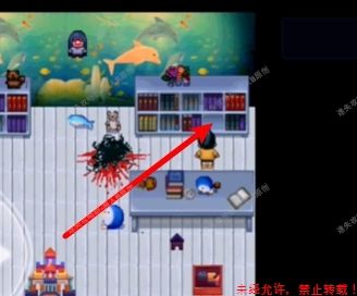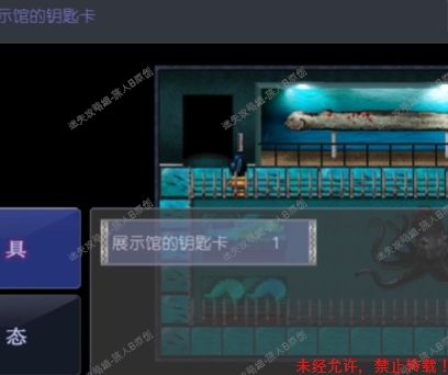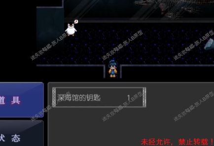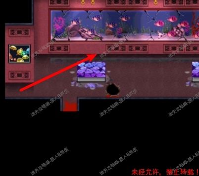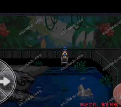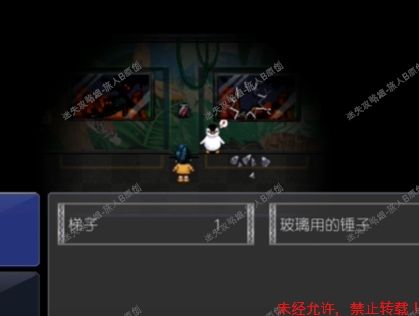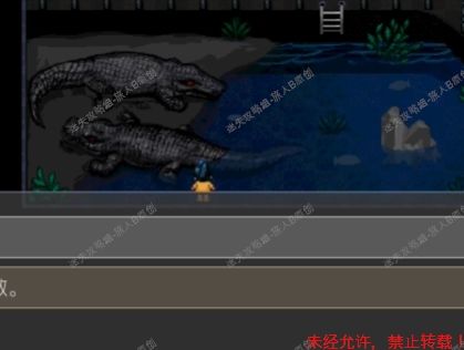 52.去鳄鱼房,用锤子砸碎玻璃。来到鳄鱼池前,放下梯子,与最下面的雌鳄鱼对话,获得【淡水鱼馆的钥匙】。52