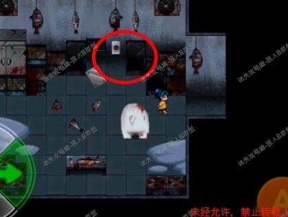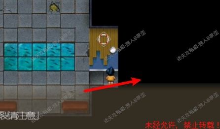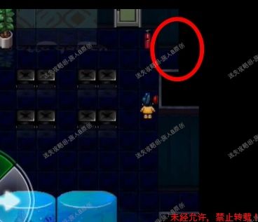 40.绕过鱼头人,从唯一的那个口子逃出,走上方的口子回到那个都是坑洞的走廊,再来到游泳池,从游泳池跑到伸手拿钥匙的地方,注意图上圈圈处有个坑,触发即死亡,所以我们走上方。40