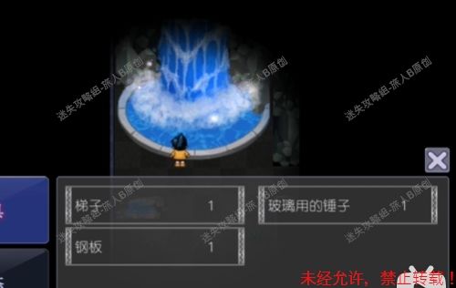 48.来到瀑布处,使用【钢板】架桥,把按钮按下,有三个开关黑,黄,白,选择白色。48