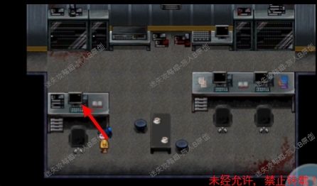 26.如图所示,走向箭头所在的口,来到柜台前,把手放进去,拿到【展示馆的钥匙卡】,注意不要放在右边的箱子内,否则立即死亡。26.1