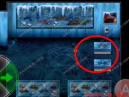 58.杀好鱼把鱼扔进海豹面前的冰洞内,海豹全部跳进水里抓鱼。艾莉来到北极熊房,北极熊会无视艾莉直接朝跳下水的海豹们走去。此时迅速向下走,注意躲避走廊上的飞刀机关,开启走廊上方的按钮,再回到北极熊房,开启图中所圈起的按钮。58.1
