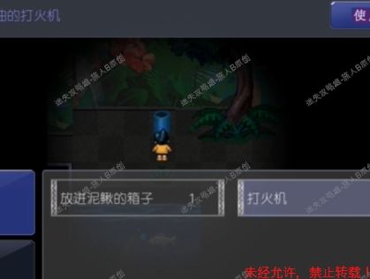 54.带上渔网,在下面的池塘中抓泥鳅,抓到后放进泥鳅箱子,来到都是蛇的地方,进入左边的门获得打火机。