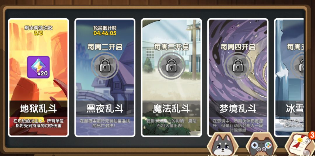 乱斗模式就比较有意思了,会在对战中添加一些疯狂的机制,让玩家体验和正常匹配赛完全不同的狂野战斗。
