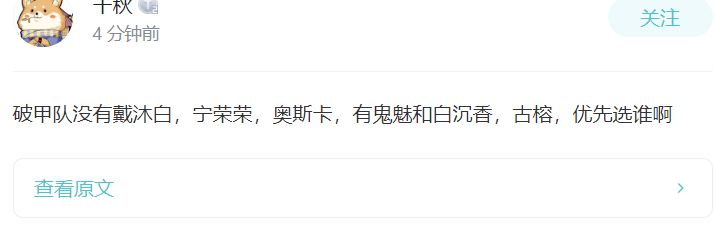 宁荣荣、奥斯卡都有其下位替代品,不必执着,但是破甲队缺少了一位,强度都是打了折扣的,更何况这位小伙伴还有鬼魅,古榕更是能和破甲反击打配合。