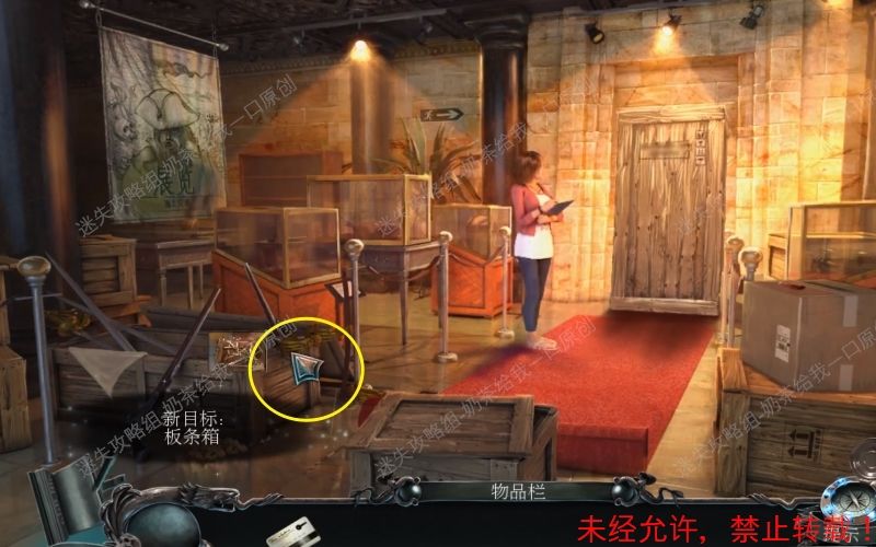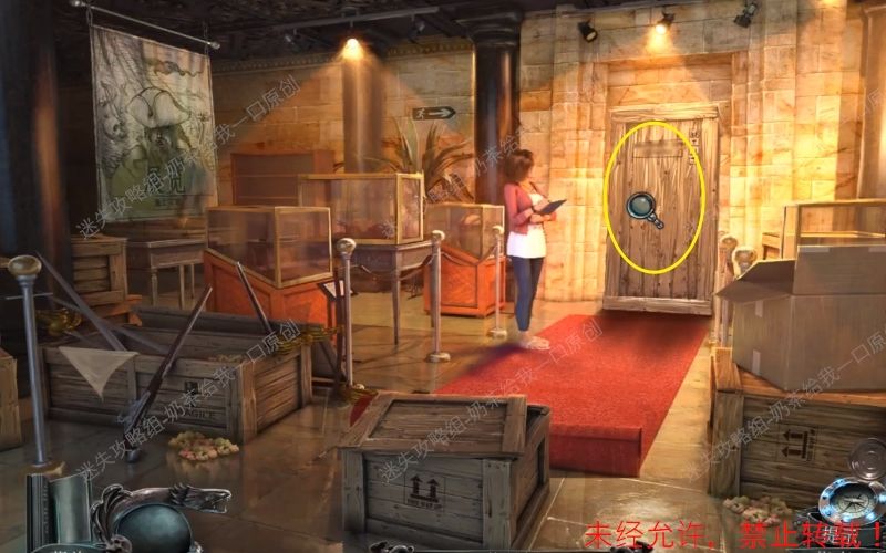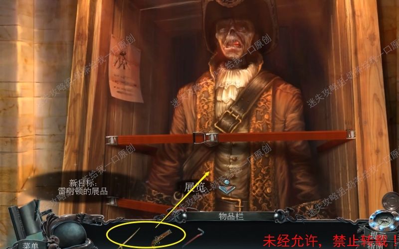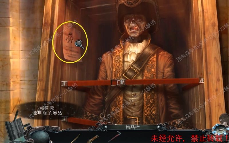 12、使用撬棍将写有“博物馆的财产”的木门打开。随后“雷明顿的展品”出现,调查左边的纸条,根据上面的提示还需要一件吊坠。12.1 12.2