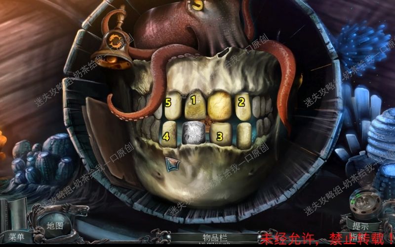 38、使用“锤子”将水桶的木板全部都砸碎。按照如图所示的顺序点击骷髅牙齿从1到5即可。38.1 38.2
