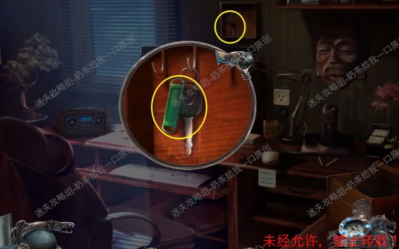 6、将里面的装饰物移走后调查左边的信件。调查墙壁上的如图所示物件,进入特写镜头之后拿走钥匙。6.1 6.2