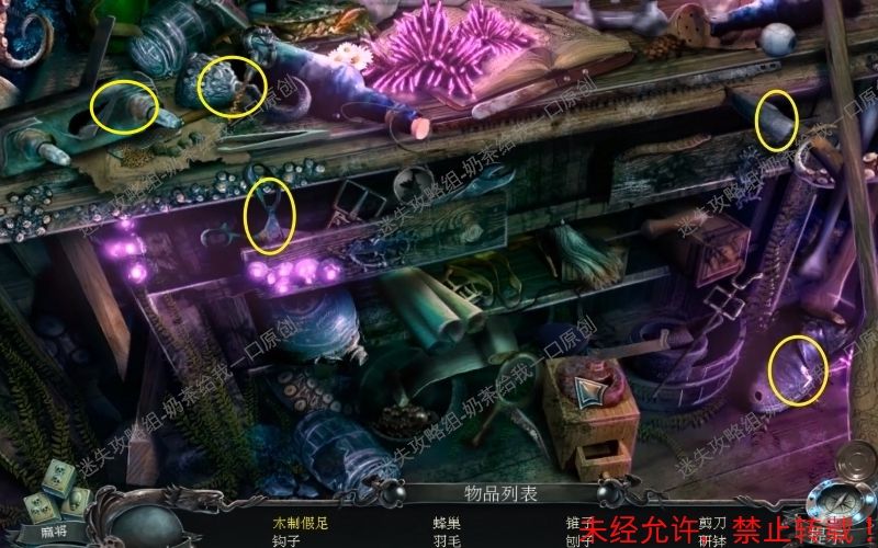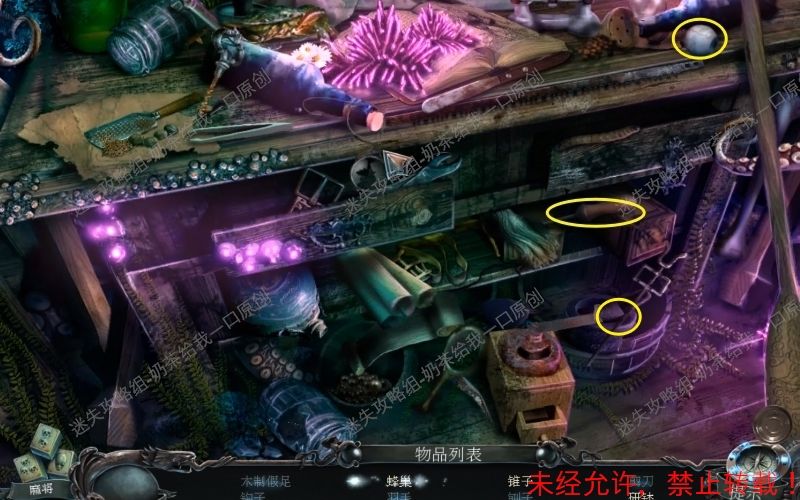 58、随后取走“水蛭”“羽毛”“蜂巢”“弯刀”再将“锥子”“眼球”“研体”取走。58.1 58.2
