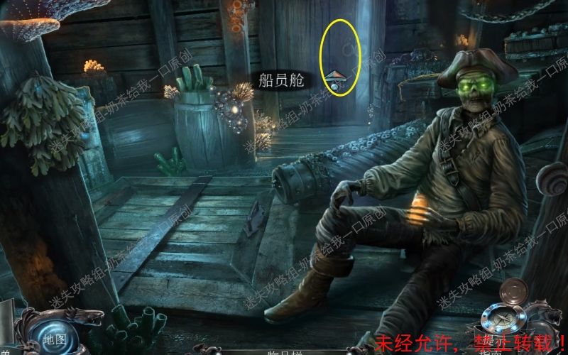 32、和面前的“船员”进行对话,完成之后可以得到地图。点击面前的门进入“船员舱”。32.1 32,2