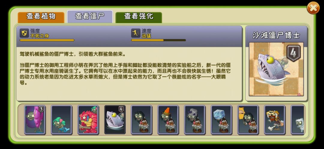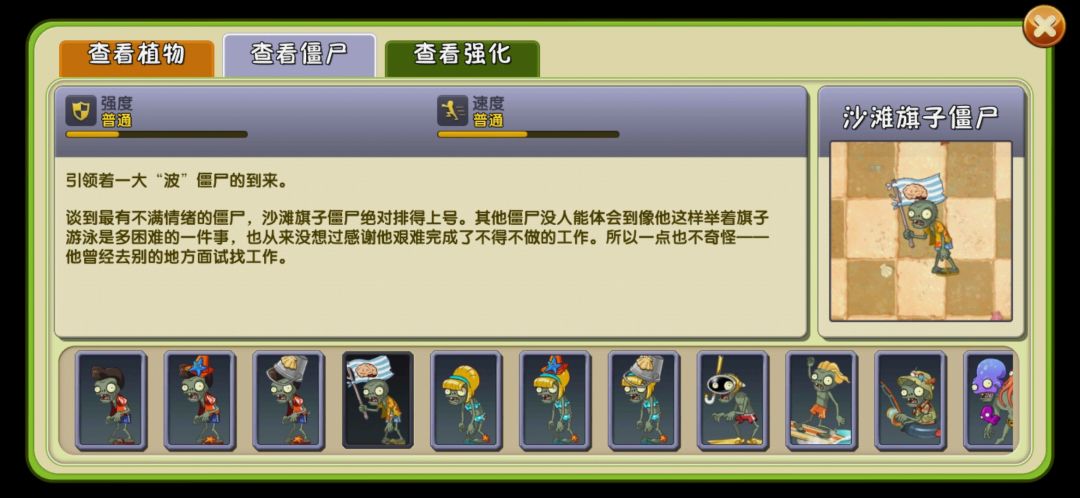 沙滩僵尸博士,沙滩僵尸博士占据一个3x1的范围。它出场的场合,场内的第8、9列将无法种植植物。