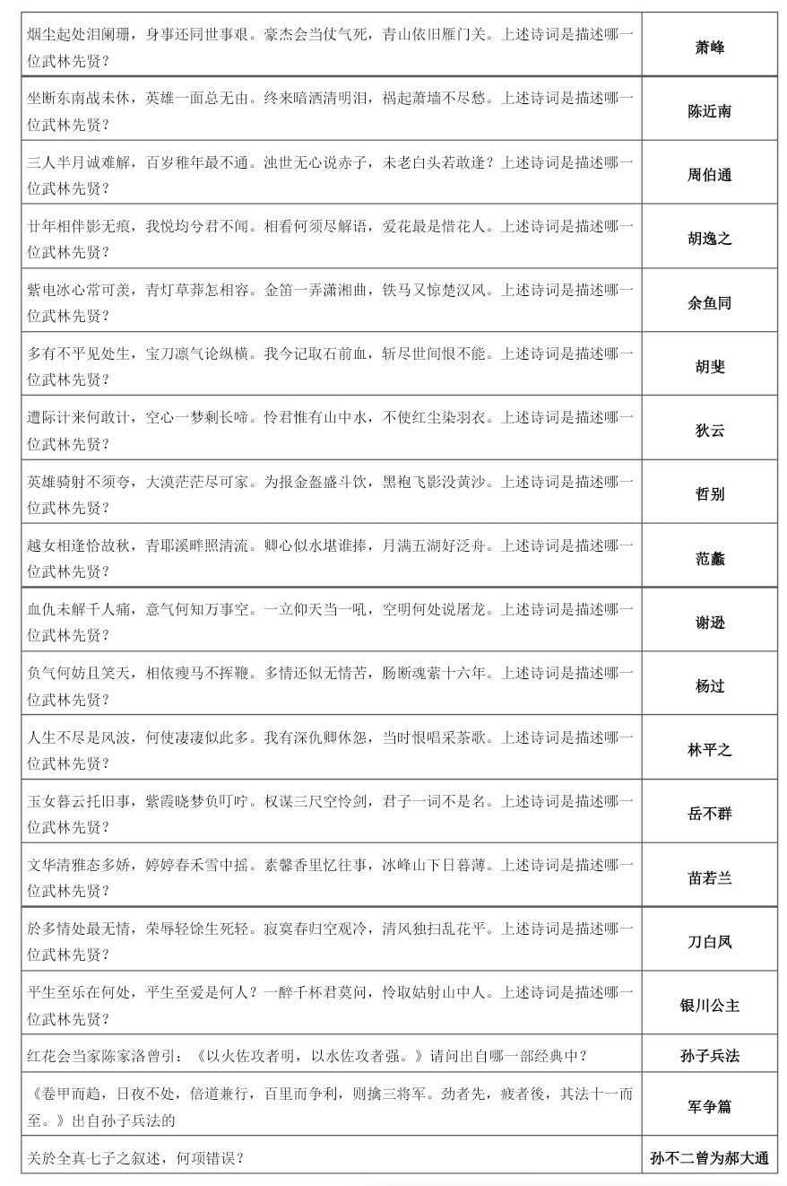 杭州书院&英雄大会题库