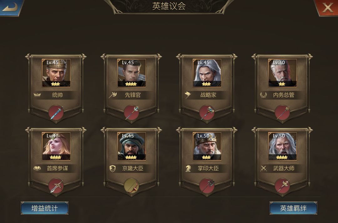 其实在之前介绍的内容中,因为有提到属性方面的问题,所以多多少少都带点英雄会议的内容在里面,但这次我打算详细说一下,包括每个位置任命之后,解锁技能之后,你要把你的资源优先用在那些技能的提升上,以及各种可以辅助城市发展的英雄,怎么任命,什么时候任命给大家好好讲解一下。