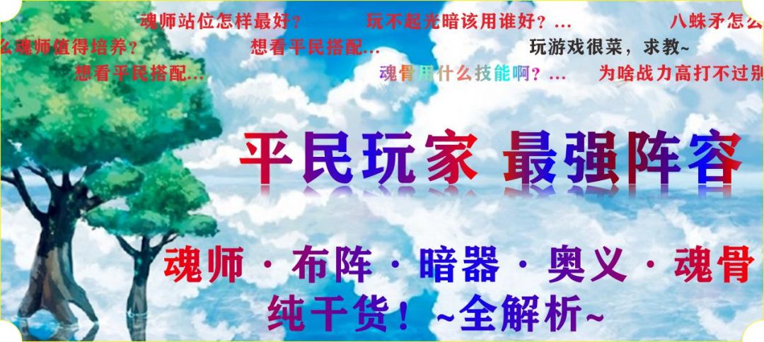 今天小编给大家带来一个属于我们平民玩家的最强阵容,可越战力挑战、同战力胜率高,低战力直接碾压的最强“国家队”组合,同时也附带讲解下一些培养的细节及魂骨技能、速度、暗器及主角武魂的搭配。