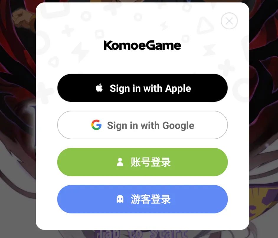 本作有四种登陆方式,其中的话,不太建议进行游客登陆,容易导致游戏进度数据丢失。如果选择苹果、谷哥登陆有困难,可选择进行账号登陆。