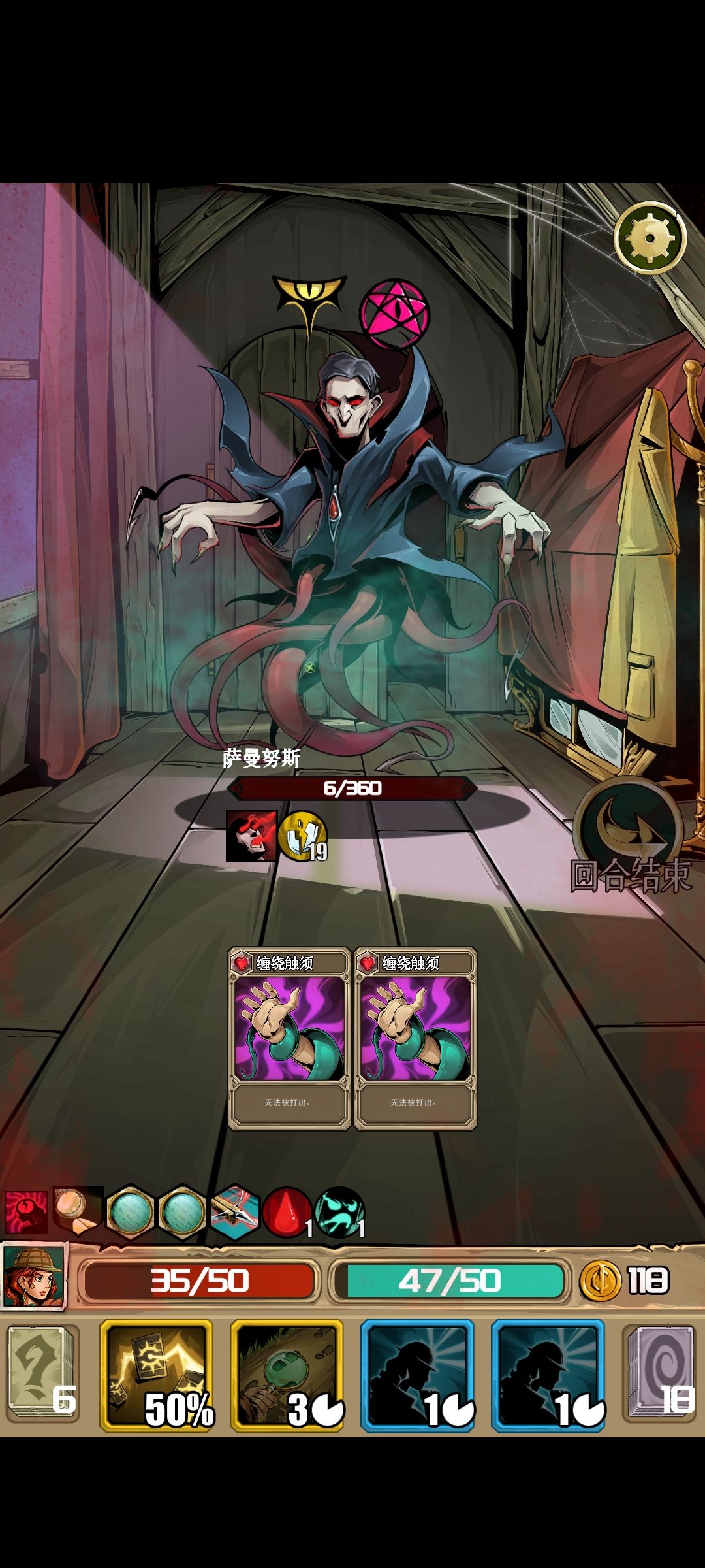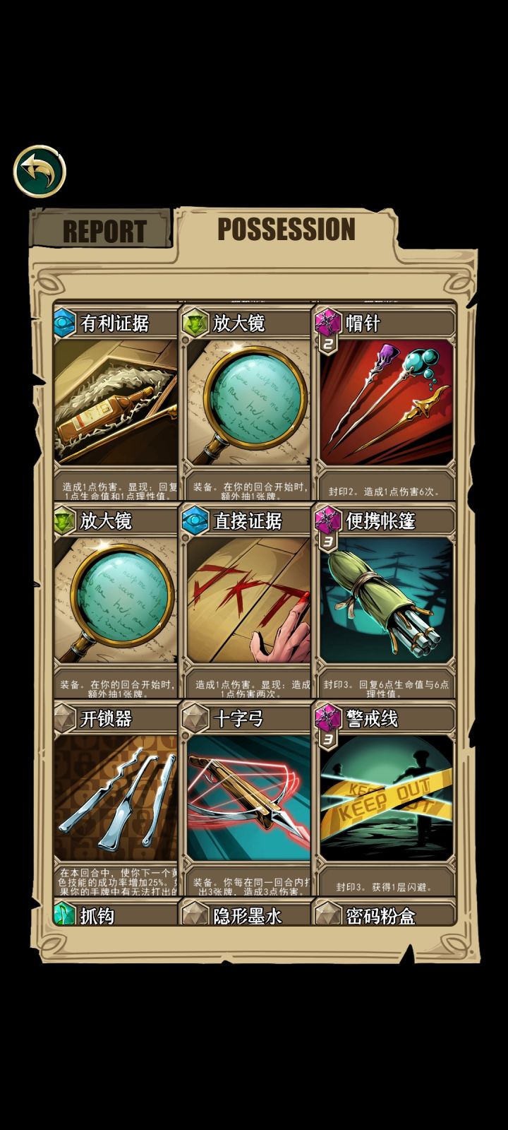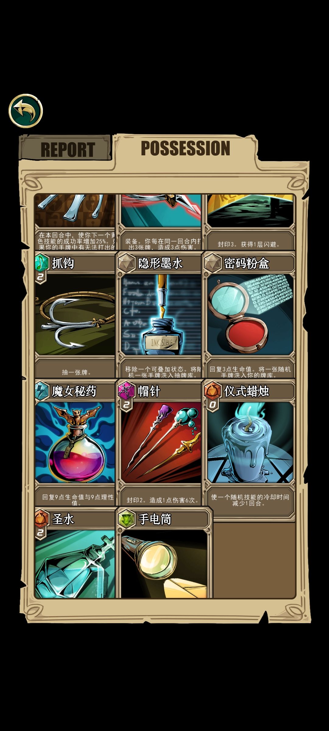 2.过牌主要是依靠回响爪钩,放大镜,蓝色初始天赋,进行过牌。