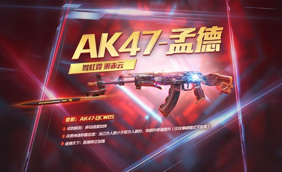 首先是在扭蛋机活动中首发的AK47-孟德,该武器外观炫酷,科技感十足,可在AK47和QCW05两种形态间自由变化。不仅如此,它还提升了射速、加强了距修和移动速度,实战性能极为强悍,被誉为Plus版的火麒麟。