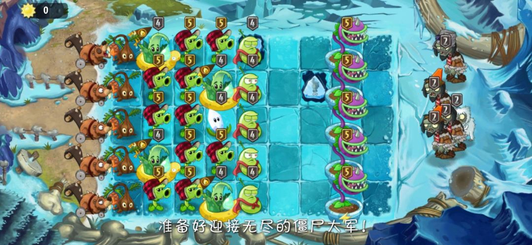 第2简单的无尽,只有几个僵尸难搞。该世界的僵尸统一免疫冰冻状态(地懒巨人僵尸除外),对它们的冰冻状态会被转化为冰减速状态。