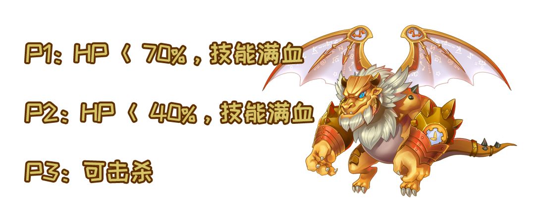在P1阶段时,当时光龙生命值降到70%后,将不再受到伤害。并且在下回合,时光龙使用时光倒流技能,让自己恢复满生命。