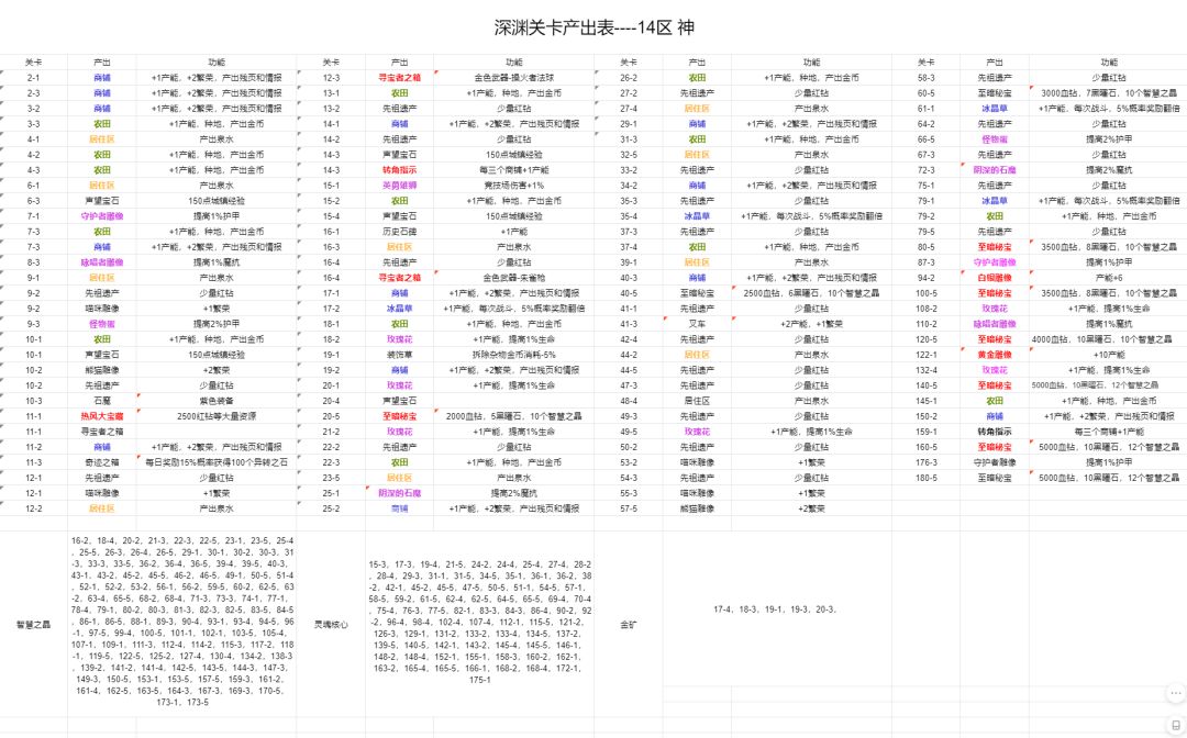 到180-5(当前版本MAX)的深渊产出表 不定期更新