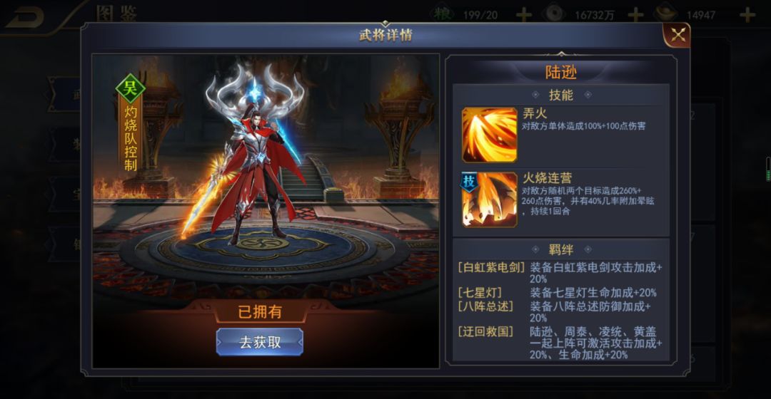 将领玩法介绍:陆逊控制型将领。宜放在阵营后排。
