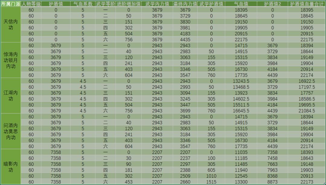 有数据了就顺便解释一下数值策划对江湖和其他门派被动武学的设计思路。