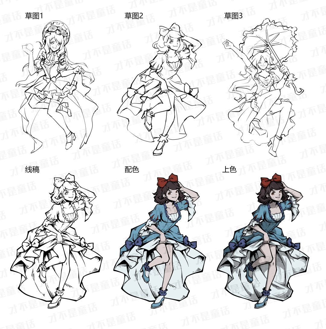 很遗憾以这种方式向大家展示我们以往每一步的创作过程,为了避免再次被描图和激发对方的“创作”灵感,素材已经全部加上水印,这次也不能再给大家图透更多啦~