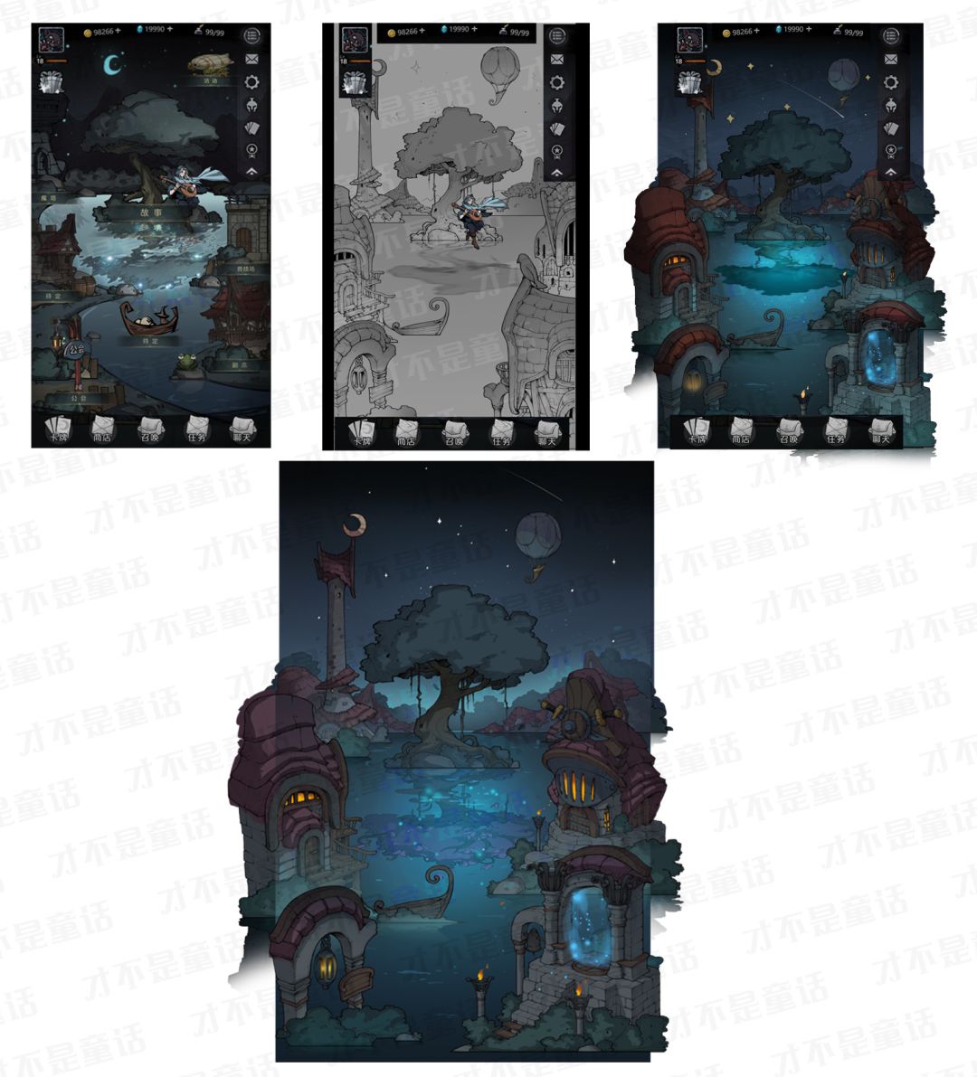 l Tap测试版主场景“星愿湖”定稿过程,中心那棵蝴蝶萦绕的世界树具有很高的辨识度。