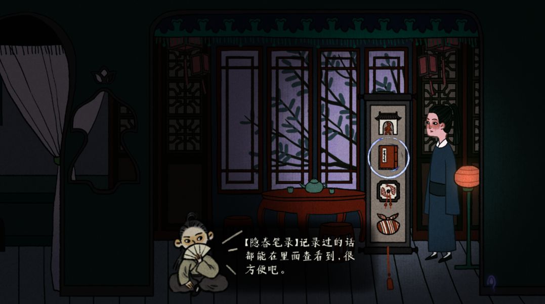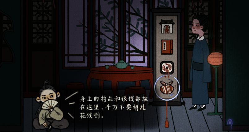 【古镜提示】假如推进了特定剧情,进入客栈后就会触发古镜的游戏关卡提示。此外,客栈里的古镜也时不时插科打诨,以缓冲剧情的紧张感和压抑感。