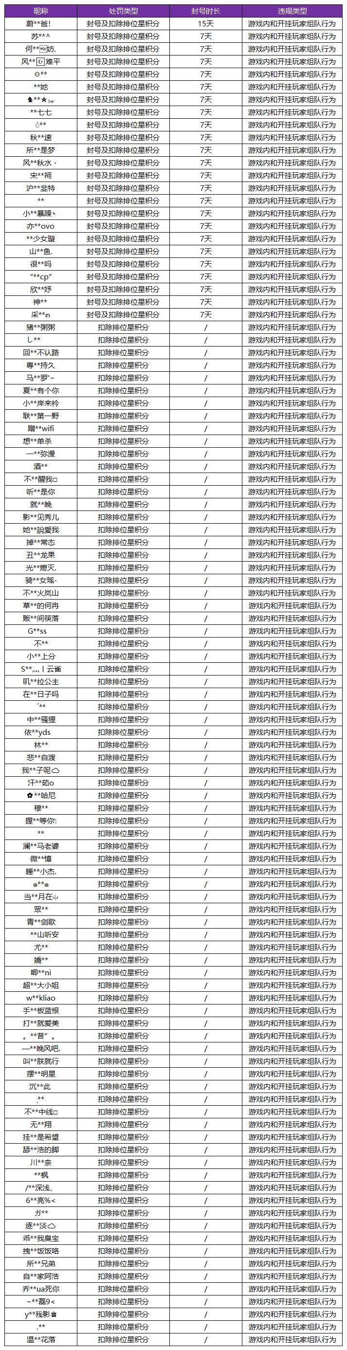 近期,狄某将对和开挂玩家组队的违规游戏行为进行专项打击,对于存在游戏内和开挂玩家组队行为的玩家,将会根据情节严重情况处以扣除排位星积分奖励、封号的处罚并且公示。