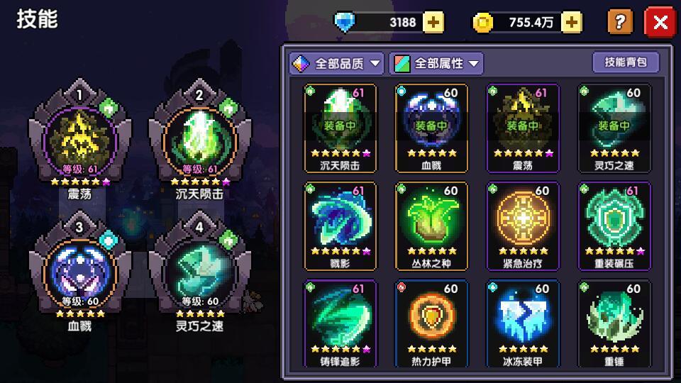 震荡10秒cd 沉天 20秒cd 手动释放技能等于 三×自动释放的技能 (普攻释放的技能伤害单次为手动的三分之一)