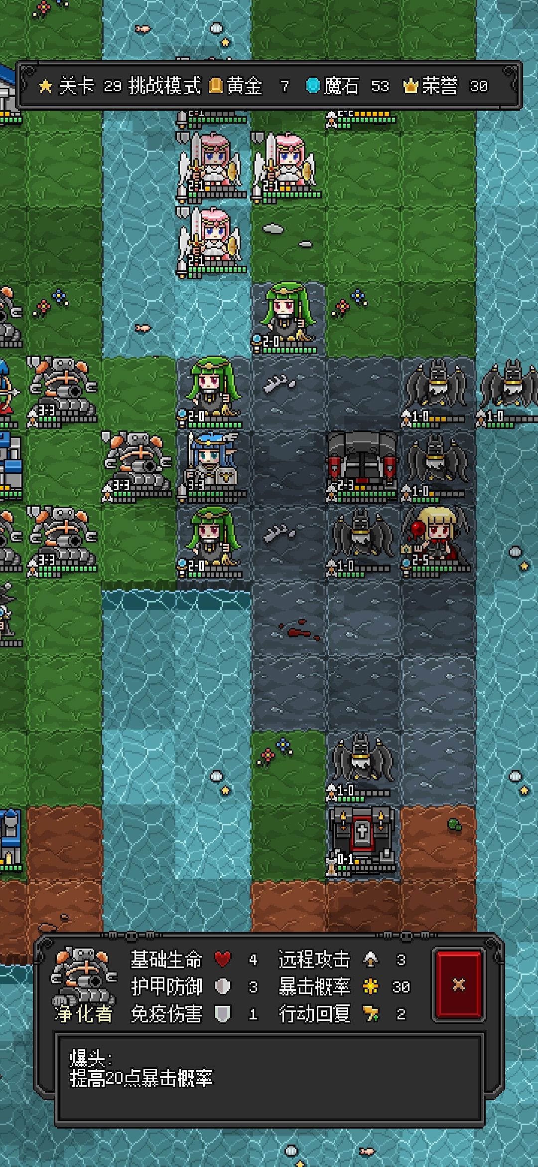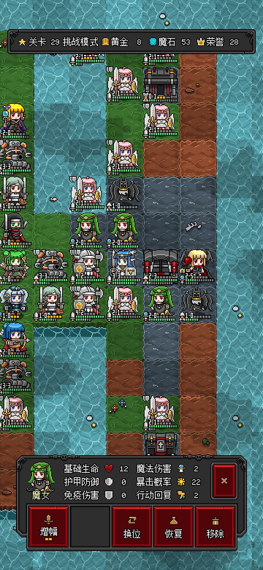 自从解锁了魔女小姐姐以后我就一直迫害她直到倒数第二关。。总体思路就是利用魔女姐姐最后一项天赋(一定要加上啊)进行全图aoe输出。这边以倒数第二关的挑战模式为例作为说明: