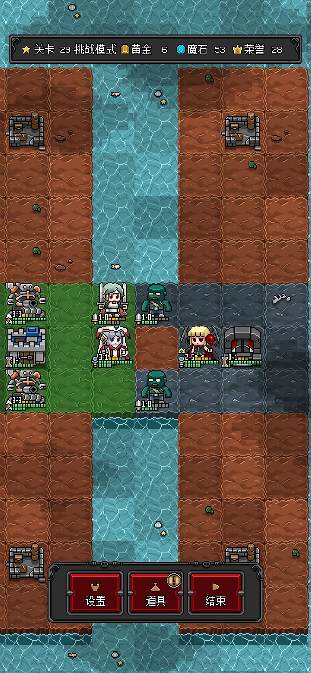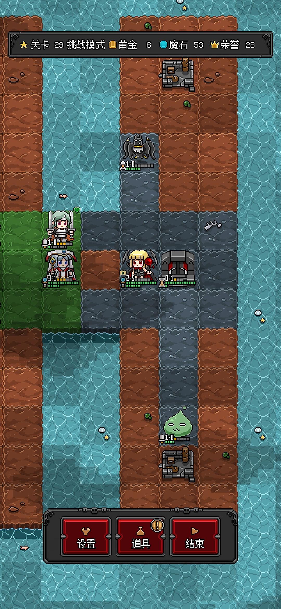 第三轮,上下占点,卖史莱姆,盖二金库。领主残了,招个蝙蝠换位到上面躲一下。