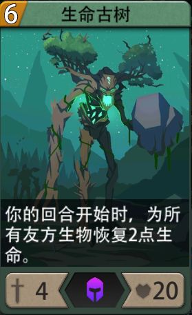 开局的初始卡组树妖可以配合怒袭增加自身的攻击力,用于补刀敌方生物非常好用。需要注意的是,通过被动获取的攻击力加成是暂时的,使用时请注意时机。