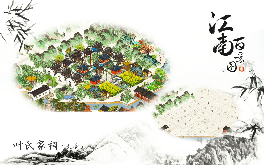最后一个家族『叶氏家祠』由于朝元宝阁和大钟鼓楼都是竹子,所以叶氏周边尽量也用竹子建筑搭配。
