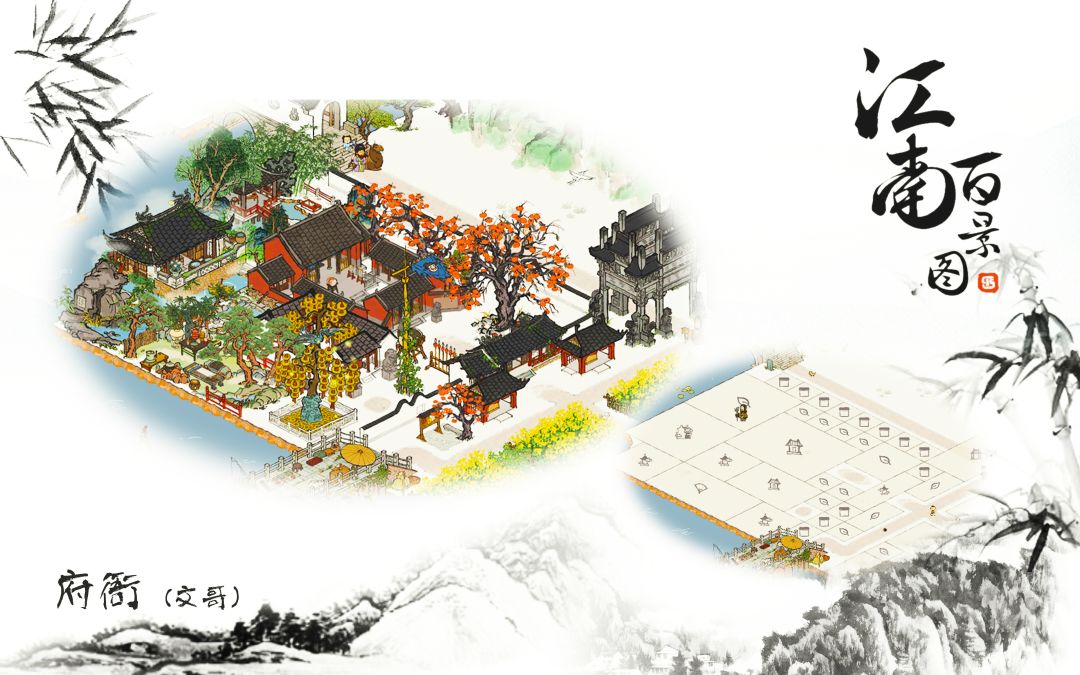 下面是一些细节图,首先进入徽州,先把大人们的府衙布置好,大柿子树放这个位置真好,和小柿子连成一片!!!